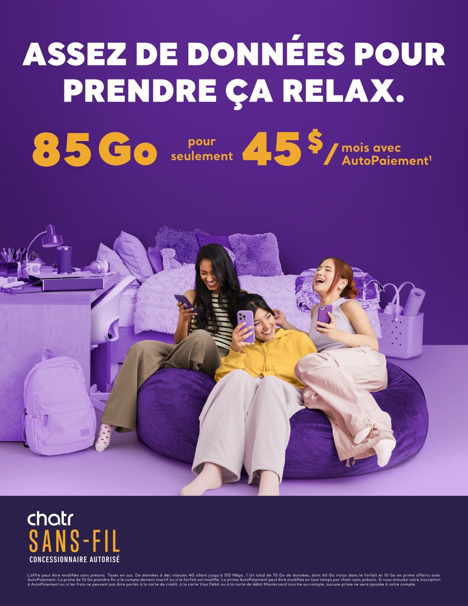 AVIS : Des frais uniques de 10 $ pour l’activation s’appliquent maintenant lors de l’activation d’un nouveau service chatr. Ces frais ne s’appliquent pas si vous choisissez un forfait de 39 $ ou plus en Ontario, ou de 40 $ ou plus au Québec.